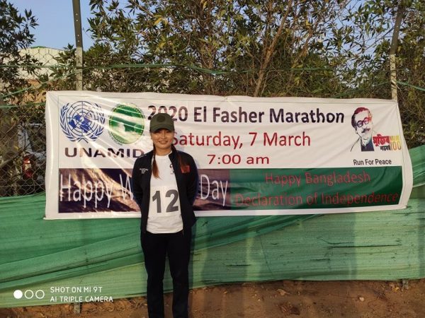 2020 оны 3 сарын 7-ны өдөр Олон улсын эмэгтэйчүүдийн эрхийг хамгаалах өдөрт зориулан Дарфур дахь нийт үүрэг гүйцэтгэж байгаа цагдаа, цэргийн энхийг сахиулачдын дунд зохион байгуулсан 12 км-ын минни марафон тэмцээн амжилттай болж, миний бие алтан медаль, цомоор шагнагдсан амжилт гаргасан мэдээг дуулгахад таатай байна. Медалиа гардан авах тэрхэн агшинд эргэн хараад эх орондоо шагнал гардан аваад хэлдэг ёсоор, өөрийн эрхгүй “Монгол улсынхаа төлөө зүтгэе” гэж хэлсэн. Энэ үед л Монгол улс тэр дундаа цагдаагийн байгууллагын алба хаагч гэдгээрээ өөрийн эрхгүй бахархах сэтгэл төрсөн. Энэ л тамирчин хүн болсоны хамгийн сайхан мэдрэмж юм даа.