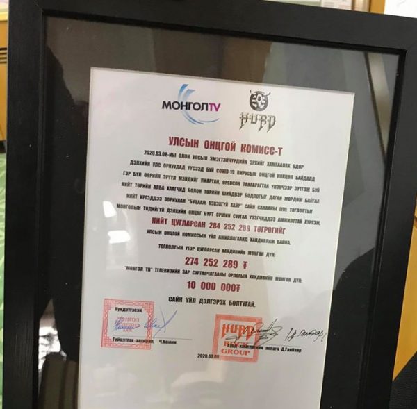 “Хурд” хамтлагийн санаачлагаар зохион байгуулагдсан “Буцааж нэхэхгүй хайр” цахим тоглолтын үеэр иргэдээс ирүүлсэн мөнгөн хандив болох 284 сая төгрөгийг өнөөдөр Улсын онцгой комисст албан ёсоор хүлээлгэн өглөө.