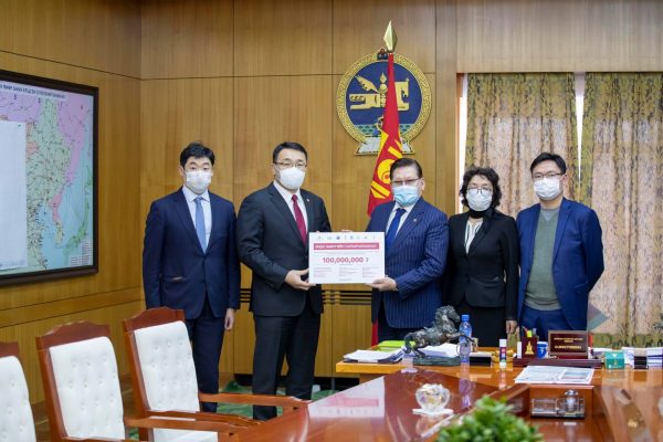 Уул уурхай, хүнд үйлдвэрийн сайд Д.Сумъяабазар хандивыг Монгол Улсын Шадар сайд, Улсын онцгой комиссын дарга Ө.Энхтүвшинд гардуулав.