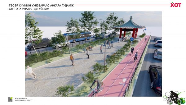 Энэхүү унадаг дугуйн зам нь нэг км үргэлжлэх бөгөөд Гэсэр сүмийн уулзвараас Анкара гудамж хүртэлх авто замын голд байрлах ногоон байгууламжийн хажуугаар хийхээр зураг төсөлд орсон байна. Дугуйн зам нь 2 урсгалтай тул замын өргөн дөрвөн метр байх юм. Иргэдийн аюулгүй байдал анхааран гэрэлтүүлэг, тэмдэг тэмдэглэгээг байрлуулах юм.