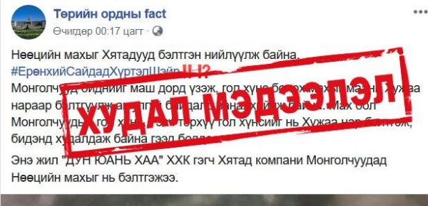 Олон нийтийн сүлжээнд “Монголчууд биднийг маш дорд үзэж, гол хүнс болох махыг маань Хужаа нараар бэлтгүүлж аюулгүй байдалд заналхийлж байна. Мах бол Монголчуудын гол хүнс. Гэвч тэрхүү гол хүнсийг нь Хужаа нар бэлтгэж, бидэнд худалдаж байна.” ….. гэсэн мэдээлэл гарчээ.