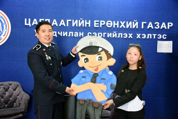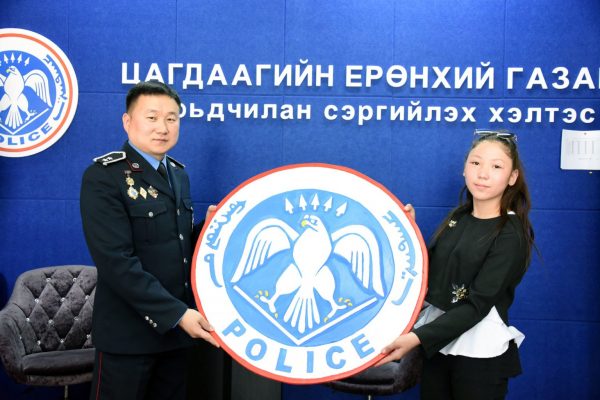 Налайх дүүргийн “Эрдмийн Оргил” цогцолбор сургуулийн долдугаар ангийн сурагч Хонгорзулын Энхжин сийлбэрээр хийсэн өөрийн бүтээлээсээ Цагдаагийн ерөнхий газарт дурсгалаа.