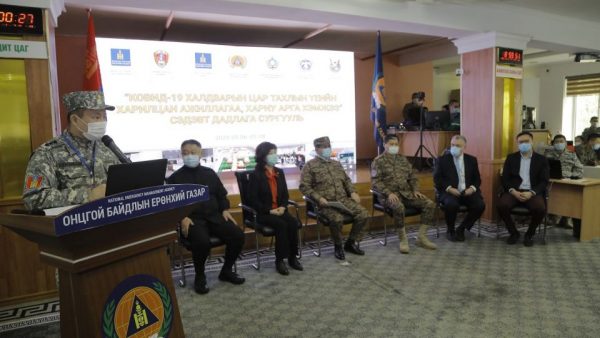 Тиймээс цар тахлаас урьдчилан сэргийлэх, тэмцэх хүч хэрэгслийн бэлэн байдлыг дээшлүүлэх, гурван түвшний удирдлагыг нягтруулах, салбар дундын хамтын ажиллагааг уялдуулан зохицуулах, онцгой нөхцөл байдлын үеийн хариу арга хэмжээний тактикийг боловсронгуй болгох, нэрвэгдэгсдийг эмчлэх, хорио цээр, халдвар хамгааллын дэглэм тогтоох чиглэлээр хээрийн хүн эмнэлэг дэлгэх зорилгоор дадлага сургуулийг зохион байгуулж байна” гэлээ.