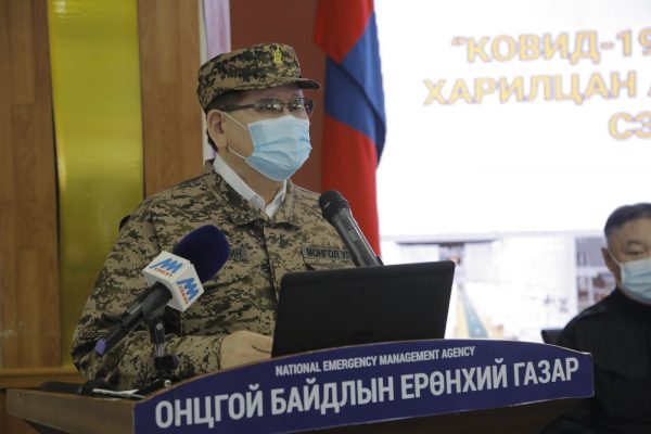 Мөн тэрбээр Монгол Улсын Засгийн газар болон Улсын онцгой комиссоос 2020 оны 01 дүгээр сараас эхлэн халдварын цар тахлаас урьдчилан сэргийлэх, гадаад улс орнуудад байгаа Монгол улсын иргэдээ татаж авах арга хэмжээг үе шаттайгаар хэрэгжүүлж байна. Энэ хүрээнд 02 дугаар сарын 01-ний өдрөөс 05 дугаар сарын 05-ны өдрийн байдлаар дэлхийн 30 гаруй улс орноос 11 удаагийн тусгай үүргийн нислэгээр 2648, хилийн авто болон төмөр замын боомтоор 6096 буюу нийт 8,744 иргэнээ эх оронд нь татан авч, тусгаарлах, эрүүл мэндийн үйлчилгээ, тандалт судалгаа хийх ажлыг зохион байгуулсан. Ингээд сургууль дадлагын үйл ажиллагаанд манай улсын төрийн бүх шатны байгууллагын алба хаагчид, ялангуяа эмч, эмнэлгийн мэргэжилтэн, эрүүл мэндийн ажилтан, онцгой байдлын албан хаагчид, цагдаа, тагнуул, батлан хамгаалах, мэргэжлийн хяналт, хилийн хяналт, гаалийн албан хаагчид, Засаг даргын тамгын газрын ажилтнууд өдөр шөнийг ялгалгүй ажиллаж байгаад талархал илэрхийлье” хэмээн онцолсон юм.