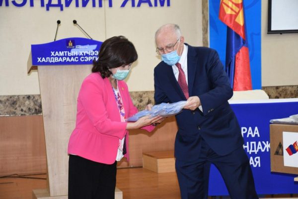 Элчин сайд Майкл Клечески хэлэхдээ АНУ-ын Батлан хамгаалах яамнаас нийт 28,399.0 ам.доллар буюу 80.0 сая төгрөгийн үнэ бүхий халдвараас сэргийлэх хувийн хамгаалах хэрэгслийг Монгол Улсын ЭМЯ, Халдварт өвчин судлалын үндэсний төв болон Мэргэжлийн хяналтын ерөнхий газарт тус тус хүлээлгэн өгч байгаа ба эдгээр хэрэгсэл нь КОВИД-19 халдварын эсрэг тэргүүн эгнээнд ажиллаж буй эмч, эмнэлгийн ажилтныг халдвараас сэргийлэхэд тодорхой хувь нэмэр оруулна гэдэгт итгэлтэй байгаагаа илэрхийллээ.
