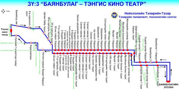 - ЗҮ:3 “Баянбулаг-Тэнгис кино театр” чиглэлд 1 их багтаамжийн автобус 2 цаг тутамдТэнгис кино театрын зогсоолоос өдөр бүр 07:00 цагаас 22:00 цаг хүртэл үйлчлэхээр бэлтгэл ажлыг ажлыг хангаад байна.