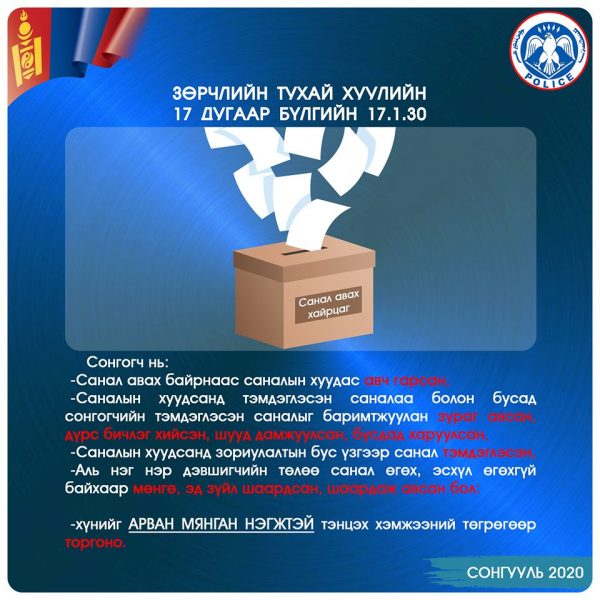 Саналын хуудсанд тэмдэглэсэн саналаа баримтжуулж зураг авсан, бичлэг хийсэн бол 10,000,000 төгрөгөөр торгоно