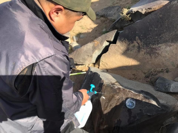 Соёлын өвийн үндэсний төвийн Соёлын биет өвийг сэргээн засварлах газрын судалгааны баг “Дуутын хадны бичээс”-ийн магмын гаралтай цахиурлаг чулуулгийн тосны гүн бохирдлыг арилгаж, цэвэрлэжээ.