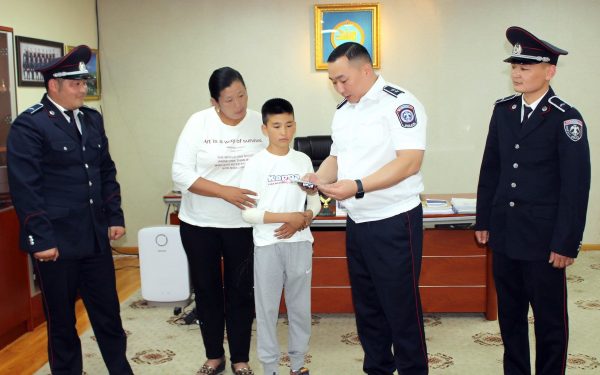 Албан үүргээ нэр төртэй гүйцэтгэж, эрдэнэт хүний амийг аварсан алба хаагчид болох Сонгинохайрхан дүүрэг дэх цагдаагийн нэгдүгээр хэлтсийн нийтийн хэв журмыг хамгаалах тасгийн хороо хариуцсан цагдаа, цагдаагийн дэд ахлагч Г.Бат-Өлзий, эргүүлийн цагдаа жолооч, дэд ахлагч Б.Отгонбат нарт 11 настай хүүгийн ээж иргэн С.Нэргүй талархал илэрхийллээ.