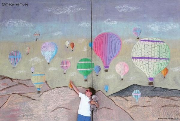 Жишээ нь 14 настай Макейр Эверетт болон түүний 9 настай дүү Камден нарыг авч үзье. Тэд хамтдаа ах, эгч, гэр бүлийнхнийхээ амьдралыг хөгжилтэй байлгаж гэрэлтүүлэх өвөрмөц аргыг олжээ. Хорио цээрийн дэглэм эхэлснээс хойш Макейр явган хүний зам дээр өнгө өнгийн шохойгоор төсөөллийн ертөнцөө бүтээлчээр зурж харин дүү нь эгчийнхээ зурсан зургаар дэлхийгээр, мөн цаг хугацаагаар аялж, хөгжилтэй зураг даруулж байв. Иллинойс мужийн Либертивилл дэх тэдний хөрш нь тэдний 100 гаруй уран бүтээлийн гэрч болжээ. Тэд цаашид ч үргэлжлүүлэн зурсаар байх болно гэж хэлсэн байна.