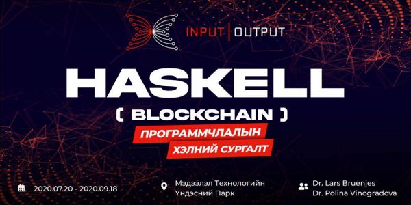 Нийслэлийн Мэдээлэл, технологийн газар, Монголын Блокчэйн технологийн холбоо болон INPUT OUTPUT компанийн хооронд байгуулсан санамж бичгийн хүрээнд Монгол улсад дэлхийд өрсөлдөх чадвартай блокчэйн хөгжүүлэгчдийг бэлтгэх зорилготой Хаскелл програмчлалын хэлний сургалт өнөөдөр албан ёсоор нээлтээ хийлээ.