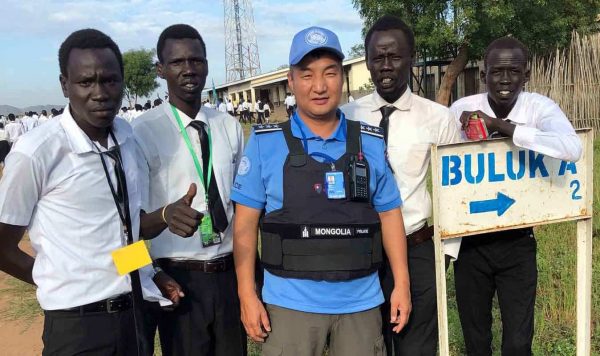 -Одоогийн байдлаар манай улсаас цагдаагийн дэд хурандаа Ш.Тунгалаг, цагдаагийн хошууч Ц.Сайханзориг, цагдаагийн ахмад Ц.Эрдэнэхишиг, цагдаагийн ахлагч П.Баянзул болон миний бие зэрэг таван алба хаагч UNMISS ажиллагааны НҮБ-ын Цагдаагийн албанд Цагдаагийн зөвлөх албан тушаалд бие даан үүрэг гүйцэтгэж байна. Алба хаагчдаас гурав нь НҮБ-ын Цагдаагийг албаны төв штабт, хоёр нь Жуба муж дахь НҮБ-ын Цагдаагийн албанд томилогдон тус тусын албан тушаалд ажил, үүргээ амжилттай хэрэгжүүлэн ажиллаж байна. Манай алба хаагчид нийслэл Жуба хотод томилогдон хамтдаа нэг дороо үүрэг гүйцэтгэж байгаа нь нэг талаас бидэнд ажил, үүргээ гүйцэтгэхэд их дөхөмтэй байгаа.