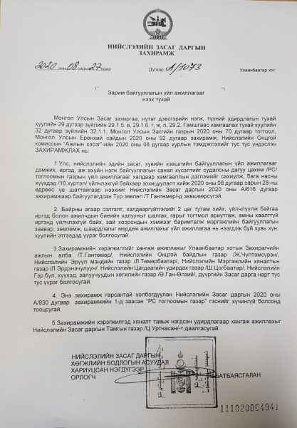 Захирамжид цахим тоглоомын газрын үйл ажиллагааг халдвар хамгааллын дэглэмийг сахиулж, 16 хүртэлх насны хүүхдэд үйлчлэхгүй байх зохицуулалтыг хийж, энэ сарын 28-ны өдрөөс үе шаттайгаар нээхийг заажээ. Мөн захирамжийн хэрэгжилтийг хангаж ажиллахыг Улаанбаатар хотын Захирагчийн ажлын алба,нийслэлийн Онцгой байдлын газар, Мэргэжлийн хяналтын газар, Цагдаагийн удирдах газар болон дүүргүүдийн Засаг дарга нарт үүрэг болгожээ.