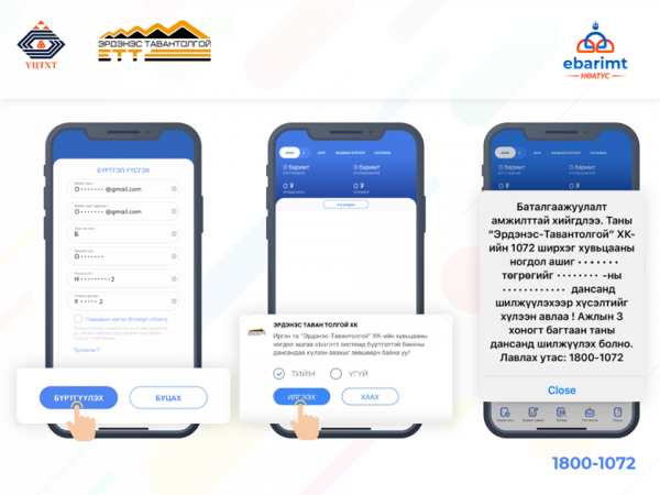 Харин “Эрдэнэс-Тавантолгой” ХК-ийн ногдол ашиг аваагүй иргэд хүсэлтээ ebarimt сайт болон аппликейшн ашиглан баталжуулалтаа хийх юм. Ингэснээр ногдол ашгийг иргэн таны баталгаажсан данс буюу ebarimt-д бүртгэлтэй дансанд ажлын 3 хоногт багтаан шилжинэ.
