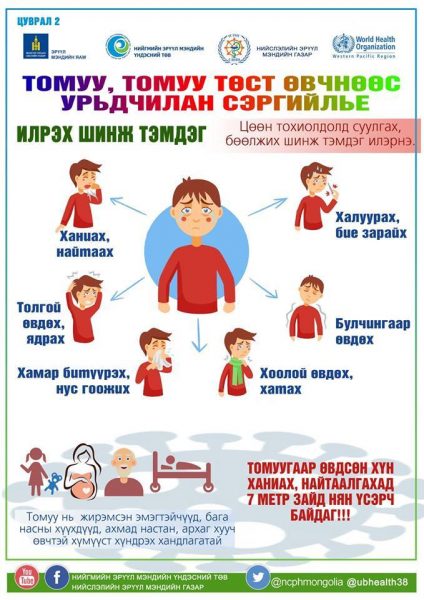 - Амьсгалын замын цочмог халдварын шинж тэмдэг илэрвэл харьяа Өрхийн эрүүл мэндийн төвд хандаж, эмчид үзүүлэх.