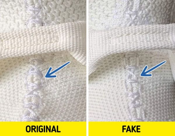 Жинхэнэ болон хуурамч эд зүйлсийн чанар нь өөр өөр байдаг. Оёдол өөр байх бөгөөд жинхэнэ бүтээгдэхүүний оёдол цэвэр, хатуу. Жинхэнэ бүтээгдэхүүн хэмжээс тутамдаа илүү олон оёдолтой. Хуурамч бүтээгдэхүүний шугамууд нь муруй байх нь бий.