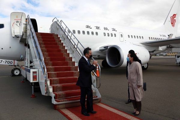 Хоёр талын албаны хүмүүс БНХАУ-ын Төрийн зөвлөлийн гишүүн бөгөөд Гадаад хэргийн сайд Ван И-г “Чингис Хаан” олон улсын нисэх онгоцны буудалд угтав.