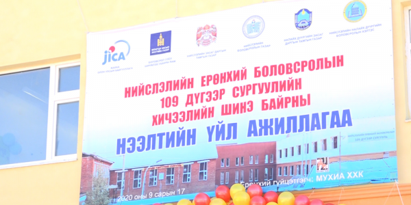 Налайх дүүргийн 109 дүгээр сургуульд өмнө нь 1-5 дугаар ангийн 300 гаруй хүүхэд суралцдаг байсан. Харин Жайка олон улсын байгууллагын буцалтгүй тусламжаар 109 дүгээр сургуулийн өргөтгөлийн барилгыг барьж, ашиглалтад орууллаа. Өргөтгөлийн шинэ барилгатай болсноор 1-12 дугаар ангийн нийт 900 гаруй хүүхэд бүрэн дунд боловсролыг эзэмших боломж бүрдэж байна.