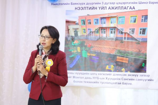 НҮБ-ын Хүүхдийн Сан, БШУЯ хамтран хэрэгжүүлдэг “Бага насны хүүхдийн цогц хөгжлийг хангах” төслийн хүрээнд 1 тэрбум 200 сая төгрөгийн хөрөнгө оруулалтаар 3-р цэцэрлэгийн хуучин барилгыг буулгаж, 100 хүүхдийн хүчин чадалтай цэцэрлэгийн шинэ барилгыг ашиглалтад оруулж, өнөөдөр хүүхдүүдээ хүлээн авлаа.