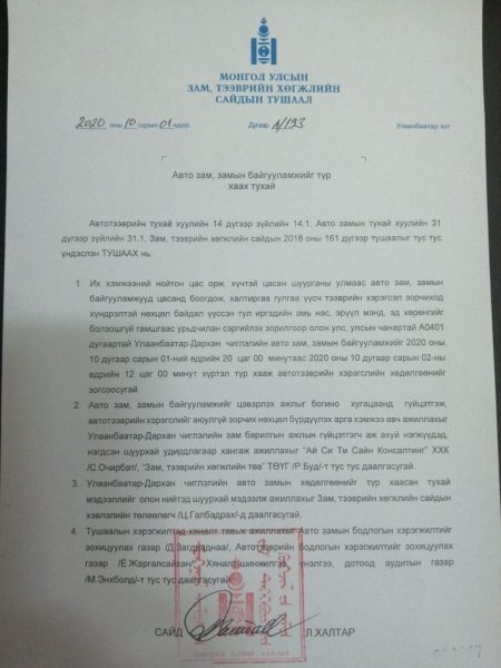 Авто замыг үргэлжлүүлэн хаах шийдвэрийг гаргалаа