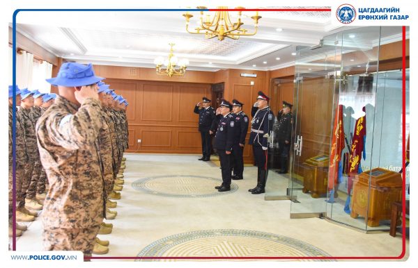 Бүгд Найрамдах Өмнөд Судан улс дахь Нэгдсэн Үндэстний Байгууллагын энхийг дэмжих “UNMISS” ажиллагааны 10 дугаар ээлжинд цагдаа, дотоодын цэргийн байгууллагаас үүрэг гүйцэтгэх 33 алба хаагчийг хүлээн авч уулзах, үдэн гаргах ажиллагаа /2020.10.04/ Цагдаагийн ерөнхий газрын Хүндэтгэлийн тэнхимд зохион байгууллагдлаа.