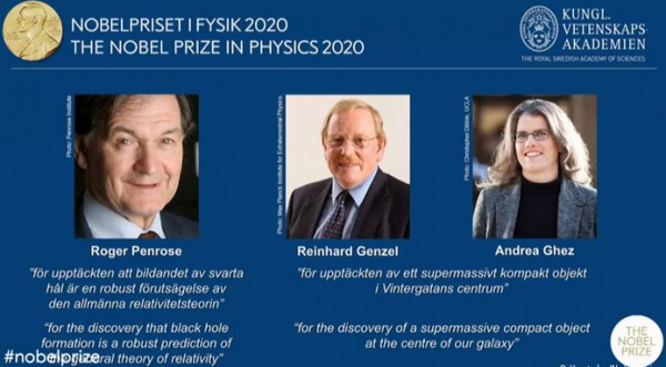Английн физикч Рожер Пенроуз, Германы одон орны физикч Райнхард Генцель, Америкийн одон орон судлаач Андреа Гез нар энэ оны физикийн салбарын Нобелийн шагналтнуудаар тодорлоо. Пенроуз хар нүх оршин байх нь харьцангуй ерөнхий онолын найдвартай таамаглал болж өгдгийг харуулсан нээлтээрээ, харин Генцель, Гез нар Сүүн замын төвд буй хэт хүнд масстай хар нүхийг нээснийхээ төлөө энэхүү нэр хүндтэй шагналыг хүртлээ гэж Нобелийн хорооны төлөөлөгч мэдэгджээ.