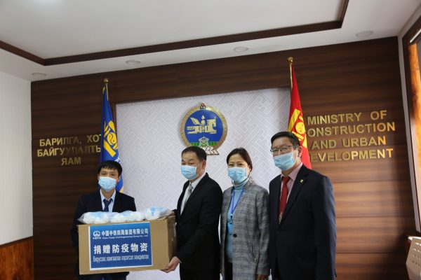 БНХАУ-ын хөнгөлөлттэй зээлээр хэрэгжиж байгаа “Улаанбаатар хотын төв цэвэрлэх байгууламжийг шинээр барих төсөл”-ийн гүйцэтгэгч Чайна Тисижу Сивил Инженеринг группээс нийгмийн хариуцлагын хүрээнд Барилга, хот байгуулалтын яаманд 6000 ширхэг амны хаалтыг хүлээлгэн өглөө.