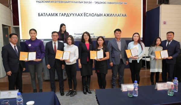 Эдгээр оюутнуудад батламж гардуулах ёслолын ажиллагаа Боловсрол, шинжлэх ухааны яаманд болж Боловсрол, шинжлэх ухааны сайд Л.Цэдэвсүрэн, “Эрдэнэс-Тавантолгой” ХК-ийн Гүйцэтгэх захирал Б.Ганхуяг, МУИС, ШУТИС, ХААИС-ын удирдлагууд, эрдэмтэд оролцов.