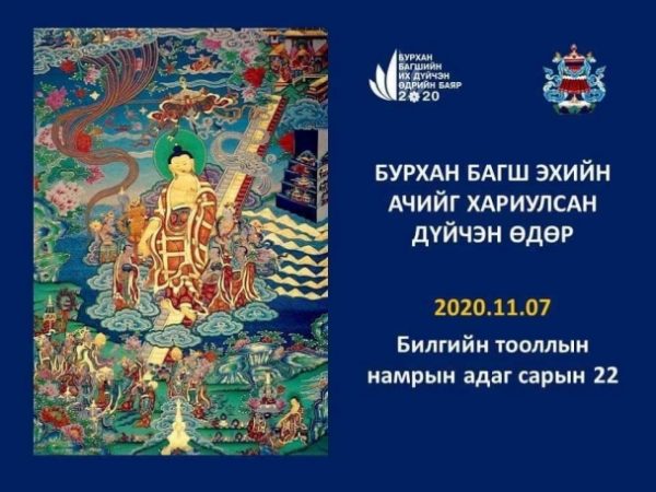 Бурхан багшийн эхийн ачийг хариулсан дүйчэн өдрийг тохиолдуулан МБШТөв Гандантэгчилэн хийдэд дараахи үйл ажиллагаа явагдах тул өргөн олноороо хүрэлцэн ирэхийг урьж байна.