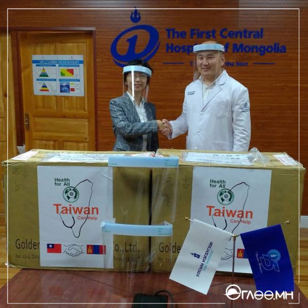 Тайваний мэргэжлийн хэвлэх машин үйлдвэрлэгч компани болох Labelmen International нь Тайваньтай дипломат болон нөхөрсөг харилцаатай улс орнуудын цар тахлаас урьдчилан сэргийлэх үйл хэрэгт туслалцаа үзүүлэхийн тулд өөрсдийн санаачлагаар 400 ширхэг нүүрний хаалтыг Монгол Улсын Нэгдүгээр Төв Эмнэлэгт хандивлав. Уг нүүрний хаалтыг хандивлах хандивын арга хэмжээг 2020 оны 11-р сарын 2-ны өдөр Улсын Нэгдүгээр Төв Эмнэлэгт зохион байгуулсан ба Тайваниас МУ-д суугаа төлөөлөгч Грэйс Ж.Р.Лүө уг арга хэмжээг хөтлөн явуулав.