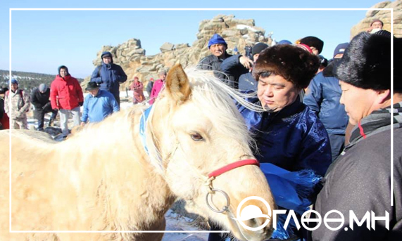 Лам хуврагууд “Морины сэтэр” ном уншиж эхлэхэд Соёлын сайд С.Чулуун шарга морины дэлэнд хадаг уян, тэнгэрийн хүлэг болгон сэтэрлэлээ.