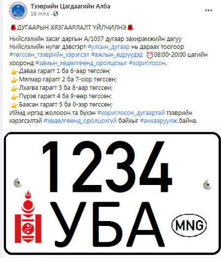 Иймд иргэд жолооч та бүхэн хориглосон дугаартай тээврийн хэрэгсэлтэй хөдөлгөөнд оролцохгүй байхыг анхааруулж байна.