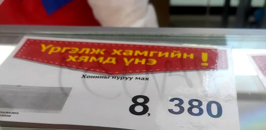 Худалдан авах үед бүтээгдэхүүний үнийн хаяг дээр 1 кг мах 8,380 төгрөг үнэтэй байсан аж. Кассан дээр очоод тооцоо хийх гэтэл кг нь 9240 төгрөг болжээ. Холбогдох хүмүүсээс асуухад “….махыг ангилдаг тул өөр өөр үнэтэй байдаг. Манайх махны үнээ нэмээгүй өмнө ямар үнэтэй байсан тэр үнээрээ худалдаалагдаж байгаа” гэж хэлжээ.