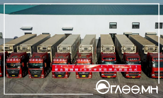Монголоос ард түмнээс БНХАУ-ын ард түмэнд хандивласан хонины эхний хэсгийг тээвэрлэсэн 10 чингэлэг ачааны машин өчигдөр өглөө Өвөр Монголын өөртөө засах орны Эрээн хот хотоос Хубэй мужийн Ухань хот руу хөдөлжээ.