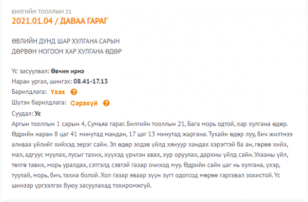2021 оны 1 сарын 4 н хулгана жилийн хулгана сарын хулгана өдөр 12 жилд 1 удаа таaрдаг өдөр энэ өдөр хишиг даллага авахуулах ажил үйл даатгах буян заяагаа тэгшитгэхэд маш сайн