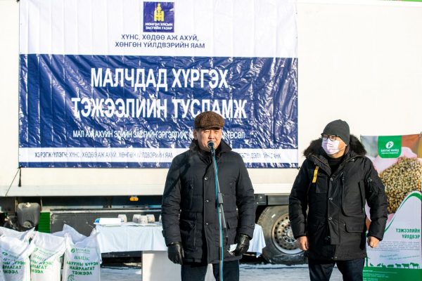 ХХААХҮ-ийн сайд З.Мэндсайхан хэлэхдээ “Өвөлжилт хүндэрсэн аймгуудын малчдад тэжээлийн тусламж бага боловч дэм, тус болно гэдэгт итгэлтэй байна. Гол нь орон нутгийн удирдлагууд тэжээлийн хуваарилалт, зохион байгуулалтын ажлуудыг малчдад чирэгдэл, төвөг учруулахгүйгээр сайтар зохион байгуулах нь чухал” гэж хэллээ.