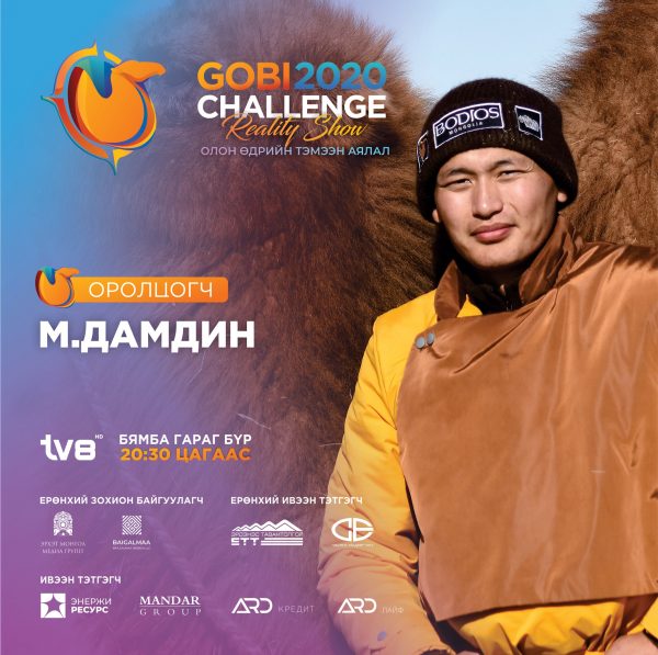 “Эрхэт Монгол” медиа групп, “ТВ8” телевиз, “Тэмээн жинчин” сангаас хамтран зохион байгуулсан “Gobi challenge-2020” төслийн хүрээнд телевизийн 10 цуврал нэвтрүүлэг гарах бөгөөд эхний дугаар өнгөрөгч бямба гарагт үзэгчдийн хүртээл боллоо.