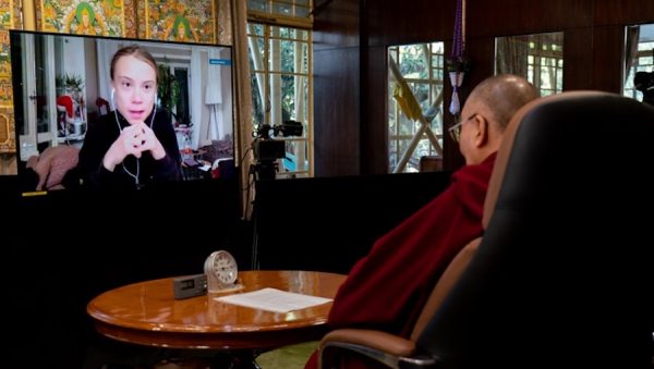 Дээрхийн Гэгээнтэн XIV Далай лам 2021 оны нэгдүгээр сарын 10-ний өдөр уур амьсгалын өөрчлөлтийн талаар эсрэг тэмцэгч, залуу идэвхтэн, 17 настай Швед охин Грета Тунбергтэй цахимаар уулзаж, “Уур амьсгалын хямрал” сэдвээр ярилцсан байна.