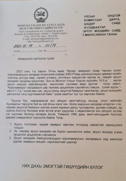 Тэгвэл өнөөдөр Шадар сайд, Эрүүл мэндийн сайдад УИХ дахь эмэгтэй гишүүдийн бүлгээс шаардлага хүргүүлжээ.
