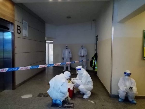 Баянзүрх дүүргийн Онцгой комиссын зүгээс тухайн байрны оршин суугчдаас шинжилгээ авахаар баг гарган ажиллаж байна.
