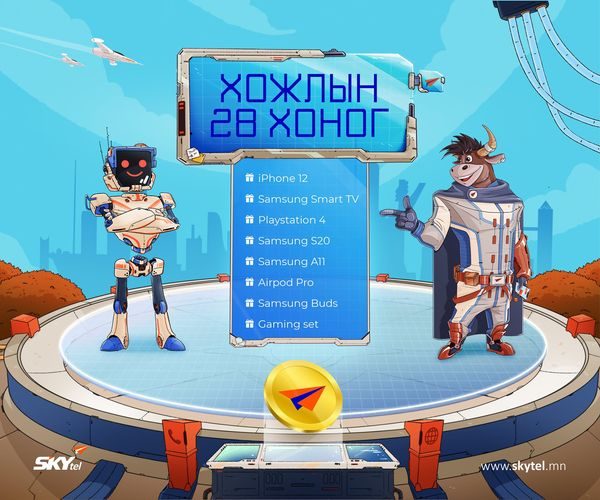 Тэгвэл хэрэглэгчдийнхээ хайр хүндэтгэл сонирхол болон хүсэлд нийцүүлэн золгон тохиож буй үхэр жилд зориулан ХОЖЛЫН 28 ХОНОГ тэмцээнийг бүх хэрэглэгчдийнхээ дунд зохиолоо. Ертөнцийн ерөнхий мэдлэг шаардах асуулт хариултын тэмцээнд өдрийн 3 хүртэлх удаа оролцоод 7 хоног бүр тодрох 3 ЯЛАГЧИЙН нэг болоорой. Энэ 7 хоногийн хувьд iPhone 12, Airpods Pro –гийн эзэд тодорно.