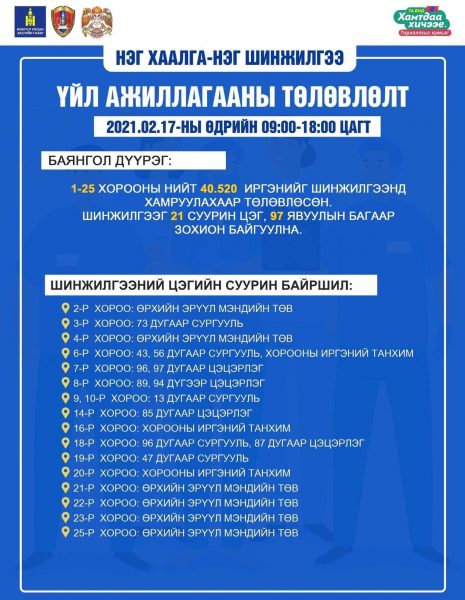 Баянгол: “Нэг хаалга – Нэг шинжилгээ”-нд 11:30 цагийн байдлаар 15,743 өрх хамрагдаад байна