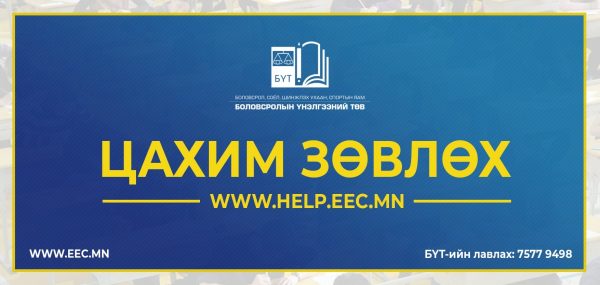 Боловсролын үнэлгээний төвийн “ЦАХИМ ЗӨВЛӨХ” портал сайт http://help.eec.mn нь элсэлтийн ерөнхий шалгалтад бэлтгэж буй Ерөнхий боловсролын сургуулийн 12 дугаар ангийн суралцагчид болон багш нарт туслах зорилготой цахим зөвлөх хуудас юм. Хэрэглээ: Интернетэд холбогдсон гар утас, компьютертэй бол хаанаас ч хэзээ ч ашиглах боломжтой. Өөрийн компьютер дээр нэмэлт программ суулгах шаардлагагүй. Утсаар ашиглах бол ДАТА үнэ төлбөргүй.