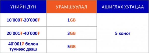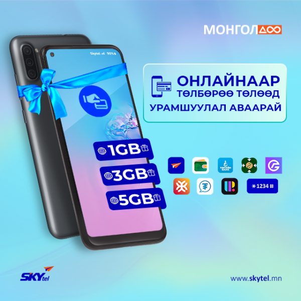 Энэ удаад СКАЙтелийн дараа төлбөрт үйлчилгээний хэрэглэгч та сар бүрийн 25-наас өмнө онлайнаар төлбөрөө төлөөд дата урамшуулал бэлгэнд аваарай. Таны төлөх төлбөрийн үнийн дүнгээс шалтгаалж урамшууллын дата өөр байна.