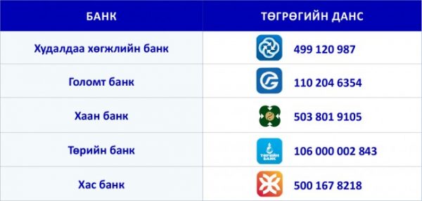 –Банкны данс: Хэрэглэгч та банкны данс ашиглан төлбөр төлөхдөө гүйлгээний утга дээр зөвхөн төлбөр төлж буй гар утасны дугаарыг оруулна уу .