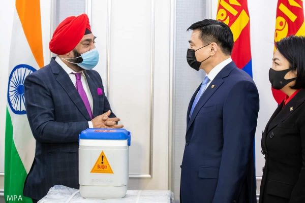 -Энэ сарын 22-ны өглөө Бүгд Найрамдах Энэтхэг Улсад үйлдвэрлэгдсэн “КОВИД-19”-ийн эсрэг вакцин Монгол Улсад хүрэлцэн ирсэнд миний бие маш их талархалтай байна. 150 000 вакциныг Монгол Улын шадар сайдад гардуулан өгч шаардлагатай эрүүл мэндийн аюулгүй байдлыг хангаж, эрүүл мэндийн салбарын ажилтнууд болон “КОВИД-19” халдварын хариу арга хэмжээний багт ажиллаж байгаа цагдаа, онцгой байдал, хил хамгаалах, гааль, мэргэжлийн хяналтын байгууллага зэрэг олон салбараас дайчлагдан ажиллаж байгаа зорилтот бүлгийн ажилчдын аюулгүй байдлыг бэхжүүлнэ гэдэгт итгэлтэй байна.