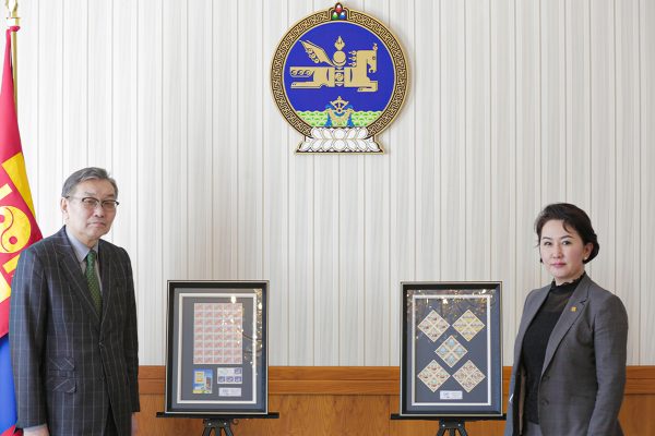Гадаад харилцааны сайд Б.Батцэцэг Онц Бөгөөд бүрэн эрхт Элчин, ахмад дипломатч, профессор Д.Баярхүүг “Монгол ба НҮБ” сэдэвт хоёр цомог маркыг Дипломат албаны музейд дурсгах болсонтой холбогдуулан 3 дугаар сарын 4-ний өдөр хүлээн авч уулзав.