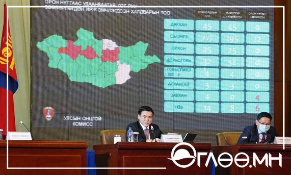 Тэрбээр “Бүх зүйлийг Засгийн газарт, Улсын Онцгой комисст даатгаад суудаг байж таарахгүй. Халдвартай нь тогтоогдсон иргэдийг орон нутагтаа тусгаарлаж, хөнгөн хэлбэрийн өвчтөнүүдийг орон нутагтаа эмчлэх шаардлагатай байна. Үүний тулд аймаг, сумдын боловсон хүчнээ чадавхжуулах, эмч, эмнэлгийн ажилтан, цагдаа, онцгой байдлын алба хаагчдыг аюул эрсдэлгүй нөхцөлд ажил үүргээ гүйцэтгэх боломжийг бүрдүүлэхэд анхаарч, иргэдийн шилжилт хөдөлгөөний асуудал буюу аймаг, хот хооронд зорчих хөдөлгөөнтэй холбоотой асуудлыг орон нутгийн удирдлагууд нөхцөл байдал, эрсдэлээ зөв тооцож, өөрсдийн бүрэн эрхийн хүрээнд шийдвэр гарган, шаардлагатай зохицуулалтыг хийхийг үүрэг болгож байна” гэв.Аймаг орон нутагт Вакцинжуулалт 5-р сараас эхэлнэ. Иймд орон нутаг дахь түргэн оношлуур, ПСР шинжилгээний төхөөрөмжийн хүрэлцээ,нөөц бололцоогоо тодорхойлж, нэн шаардлагатай зүйлсийн жагсаалтыг гаргаж бэлтгэл ажлыг сайтар хангахыг Засаг дарга нарт даалгалаа.Уулзалтад мөн Монгол Улсын сайд, ЗГХЭГ-ын дарга Ц.Нямдорж болон Засгийн газрын гишүүд бүрэн бүрэлдэхүүнээрээ оролцож, үг хэлж, асуултад хариулав.