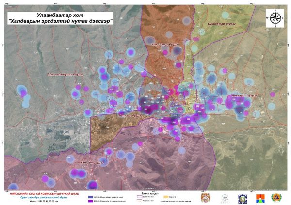 Нийслэлийн Онцгой комиссын шуурхай штабын Орон зайн дүн шинжилгээний баг “Ковид-19” халдварын батлагдсан тохиолдлуудыг мэдээллийн санд бүртгэж, орон зайн дүн шинжилгээний аргачлалаар халдварын эрсдэлийн тархалт, нягтрал, чиг хандлагын тооцоолж байгаа билээ.