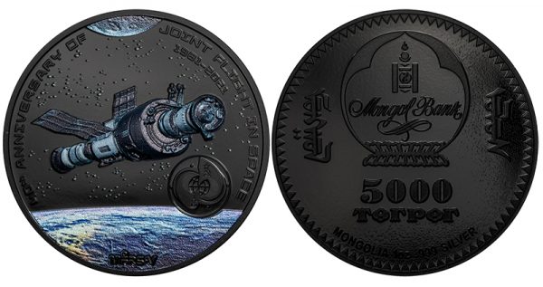 Өмнө нь Монголбанкнаас 1981 онд тус түүхэн өдрийг тохиолдуулан “ЗСБХУ-БНМАУ сансрын хамтарсан нислэг” гүйлгээний 1 төгрөг, 1994 онд “Союз-39, Салют-6” сэдэвт дурсгалын зоосыг гаргаж байсан бол хамгийн сүүлд 2011 онд “Сансрын хамтарсан нислэг 30 жил” дурсгалын мөнгөн зоосыг 25 грамм болон 1 кг-ын жинтэйгээр гаргаж байв.